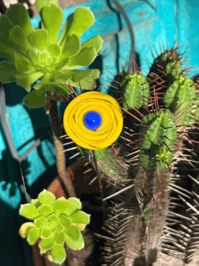 Fleur en verre - Coeur bleu foncé / Corolle jaune